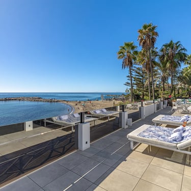 Set directly on Marbella’s beachfront, the villa enjoys a frontline position along the seaside promenade, just a short walk from Puerto Banús. This privileged coastal setting combines immediate beach access with proximity to Marbella’s most dynamic social and lifestyle areas.