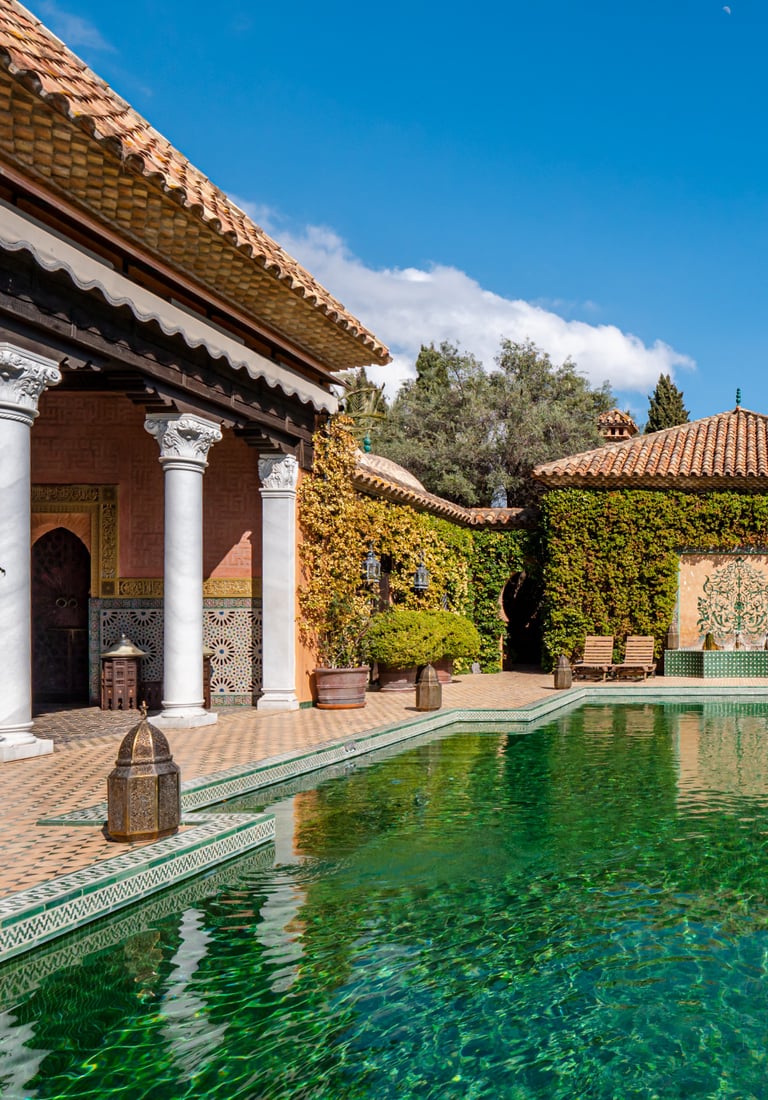 18-metre outdoor swimming pool lined with handcrafted Moroccan tiles