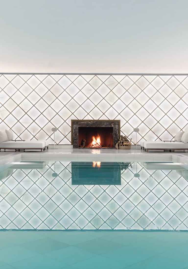 Dedicated spa level with heated indoor pool, jacuzzi, sauna, massage suite, and rain shower