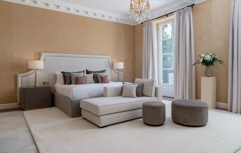 La Favorita accommodates sixteen guests across eight elegant suites, each designed with soft tones, generous light, and a calm residential feel.