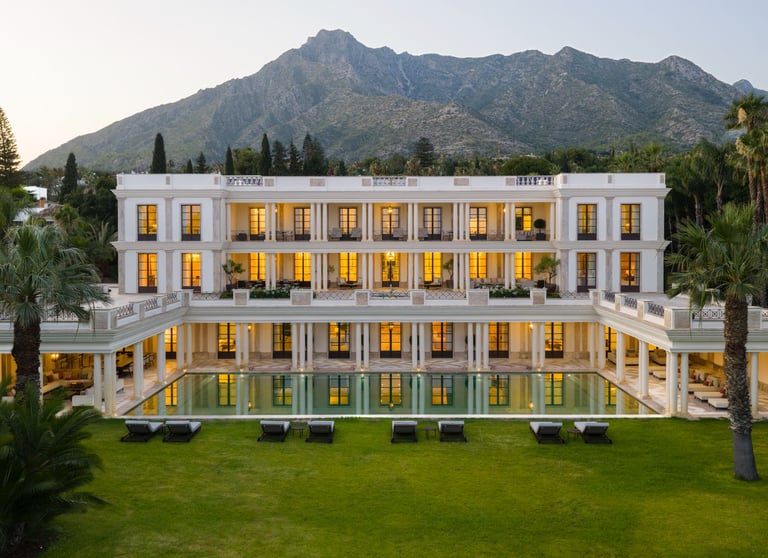 La Favorita is one of the most striking private estates on the Golden Mile, an exceptional setting for corporate incentives, intimate weddings, executive retreats, and high profile gatherings. Its grand façade, expansive lawns, and elegant salons offer a powerful backdrop for multi day programs and elevated hospitality.
