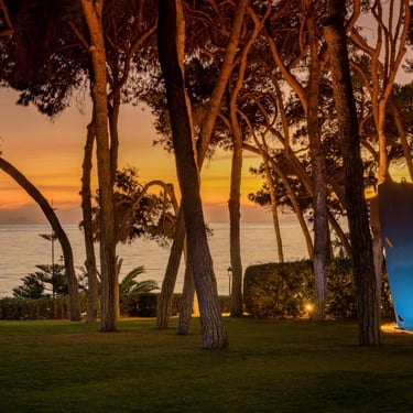 Set within 11,800 m² of mature pine gardens and slightly elevated above the promenade, the estate ensures discretion while maintaining direct Mediterranean access. Private buyout only.