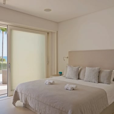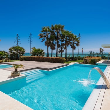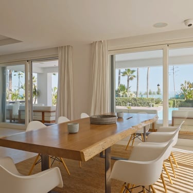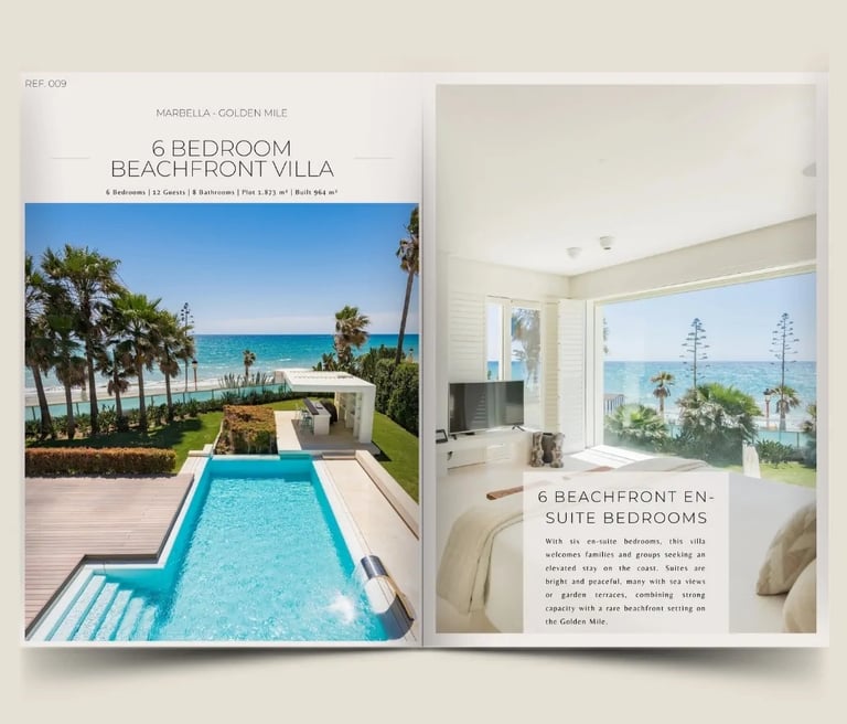 Set on a rare frontline beach plot on the Golden Mile, this six bedroom villa offers privacy and direct sea access within one of the coast’s most established residential enclaves. The setting combines discretion with convenience, making it well suited to private group stays, small retreats, and agency curated programmes.