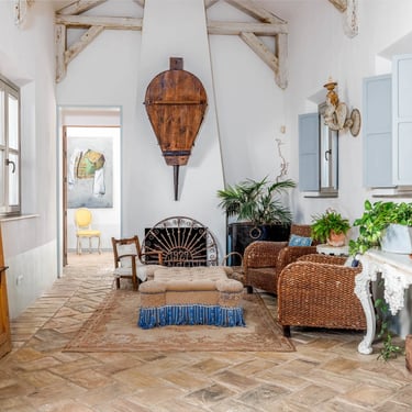 Textured stone floors, exposed wooden beams, and artisan detailing create warm, character-filled interiors. Natural materials, soft textiles, and filtered light reflect authentic Andalusian craftsmanship paired with understated Mediterranean elegance throughout.