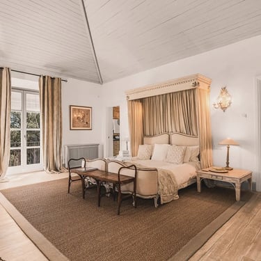 Six refined en-suite bedrooms accommodate up to fourteen guests, including a family room and independent apartment for added privacy. Soft neutral tones and subtle vintage details create calm, character-filled suites ideal for extended stays near Marbella.