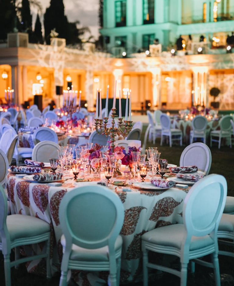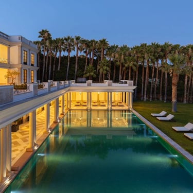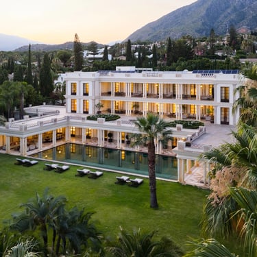 Set within 12,871 m² of private grounds in Nagüeles, this landmark estate combines architectural grandeur with operational scale suited to high-profile gatherings. Formal façades, sweeping terraces, and expansive flat lawns create a visually striking yet highly functional setting for multi-day programmes and private buyouts.