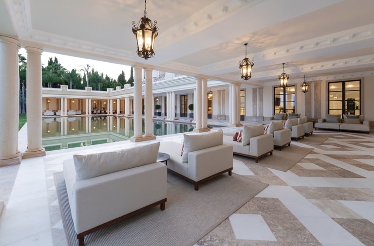 La Favorita stands as a landmark on the Golden Mile, where classical architecture, panoramic sea views, and expansive landscaped grounds combine in exceptional harmony. Its scale, serenity, and visual presence place it among the most breathtaking estates in Marbella.